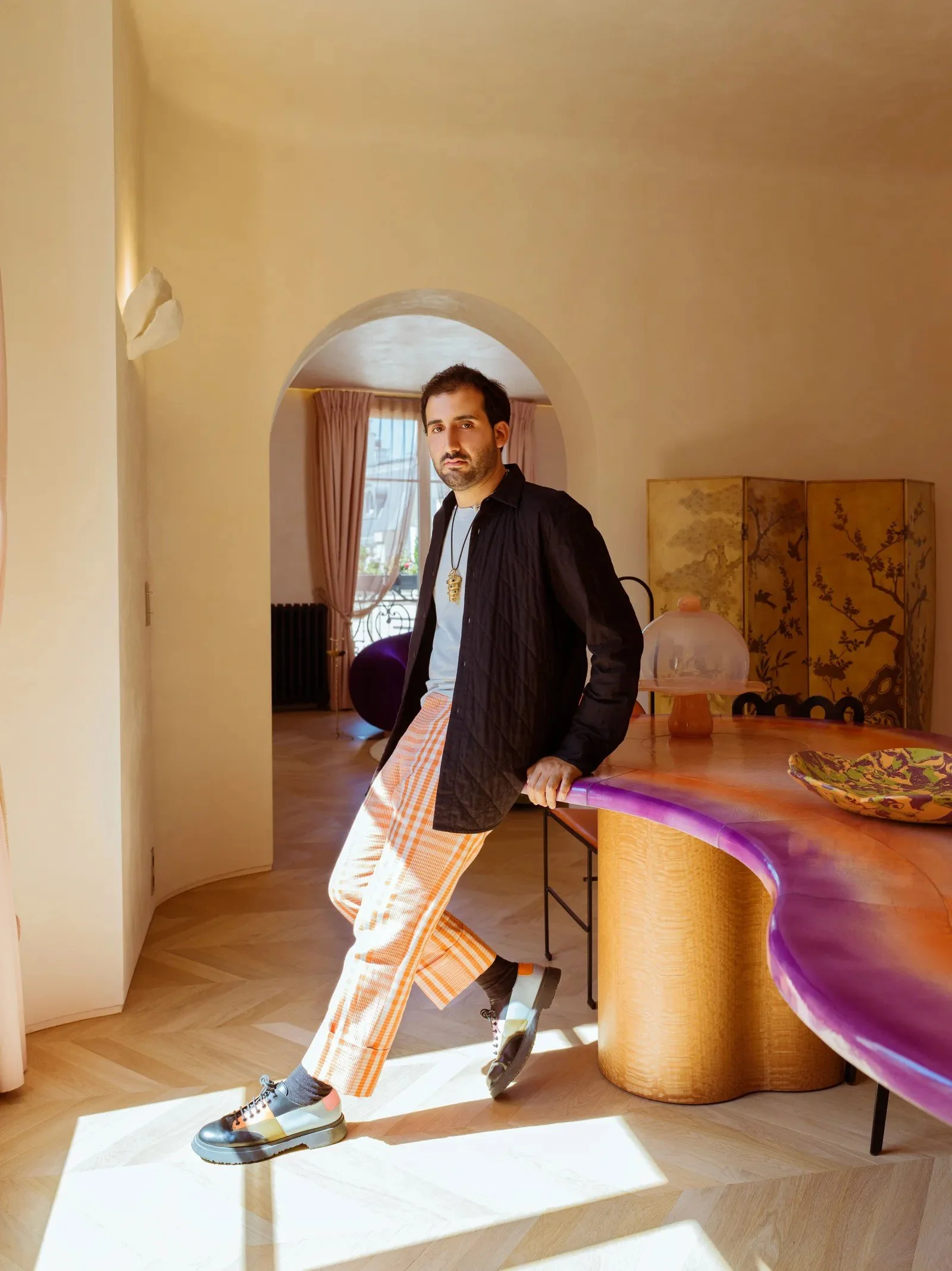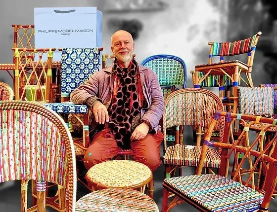 Designer and fashion designer, Philippe Model envisions a harmonious world full of evocative colors that invite us on a tranquil imaginary voyage. His universe is made up of hats, shoes, bags, books, interiors, wallpapers, colors (with the Ressource brand), chairs, tables, and decorative accessories...